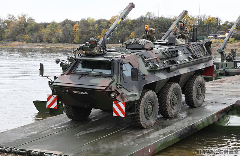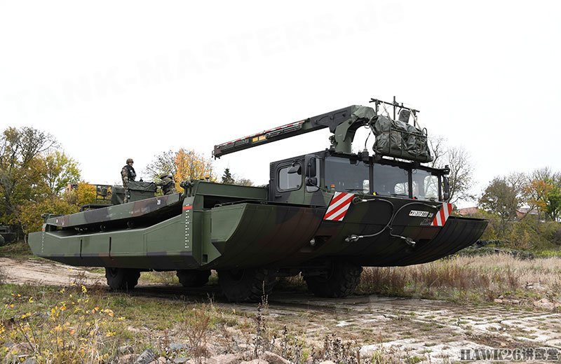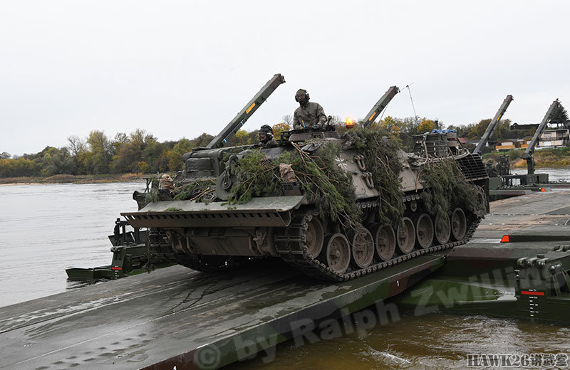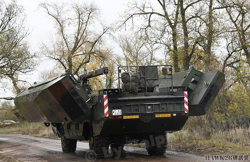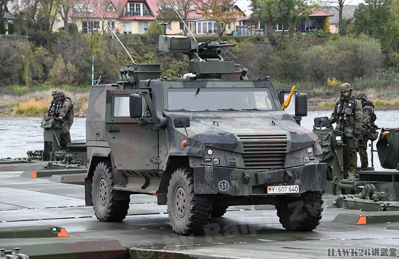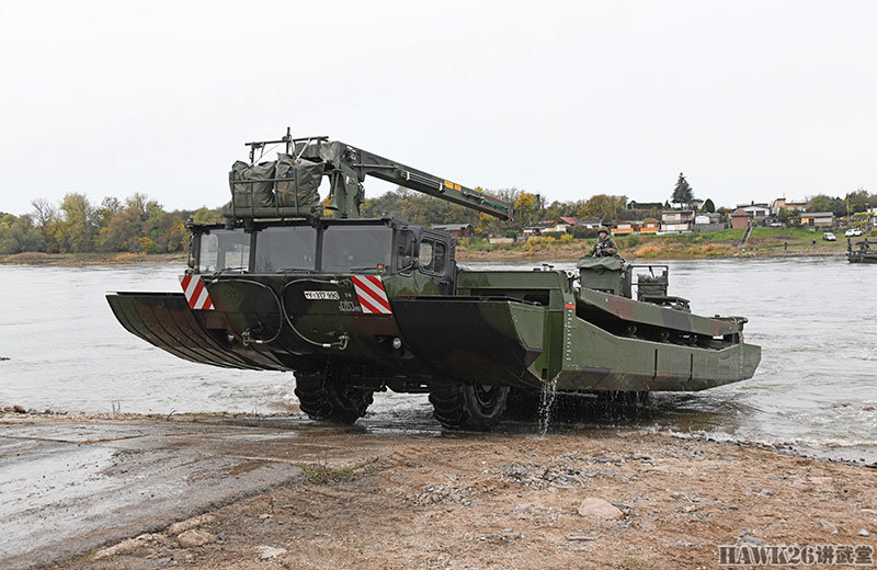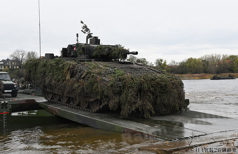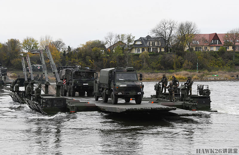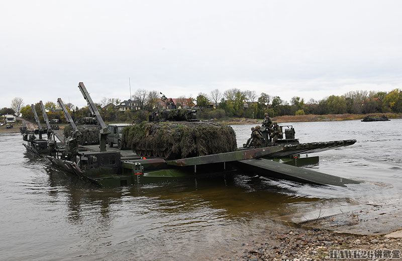 这次漕渡M3舟桥车搭载了“美洲豹”步兵战车和装甲抢救车。