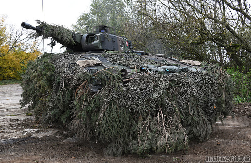 德军非常重视隐蔽,所以在演习中可以看到所有“美洲豹”都挂满了树枝。
