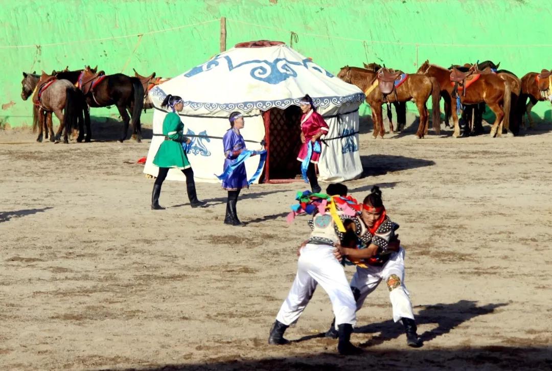 3【那达慕】打了胜仗又迎丰收,牧人们举行了盛大的“那达慕”。摔跤,射箭、赛马是蒙古人力量和智慧的展示。