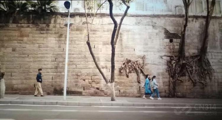 电影中一个人来人往的镜头就是中山四路,位于重庆市渝中区上清寺,是抗战文化一条街,代言着重庆的前世今生,取景的具体位置是在德精学堂对面。这里树扎根在墙面,代表着顽强的生命和坚强的意思。