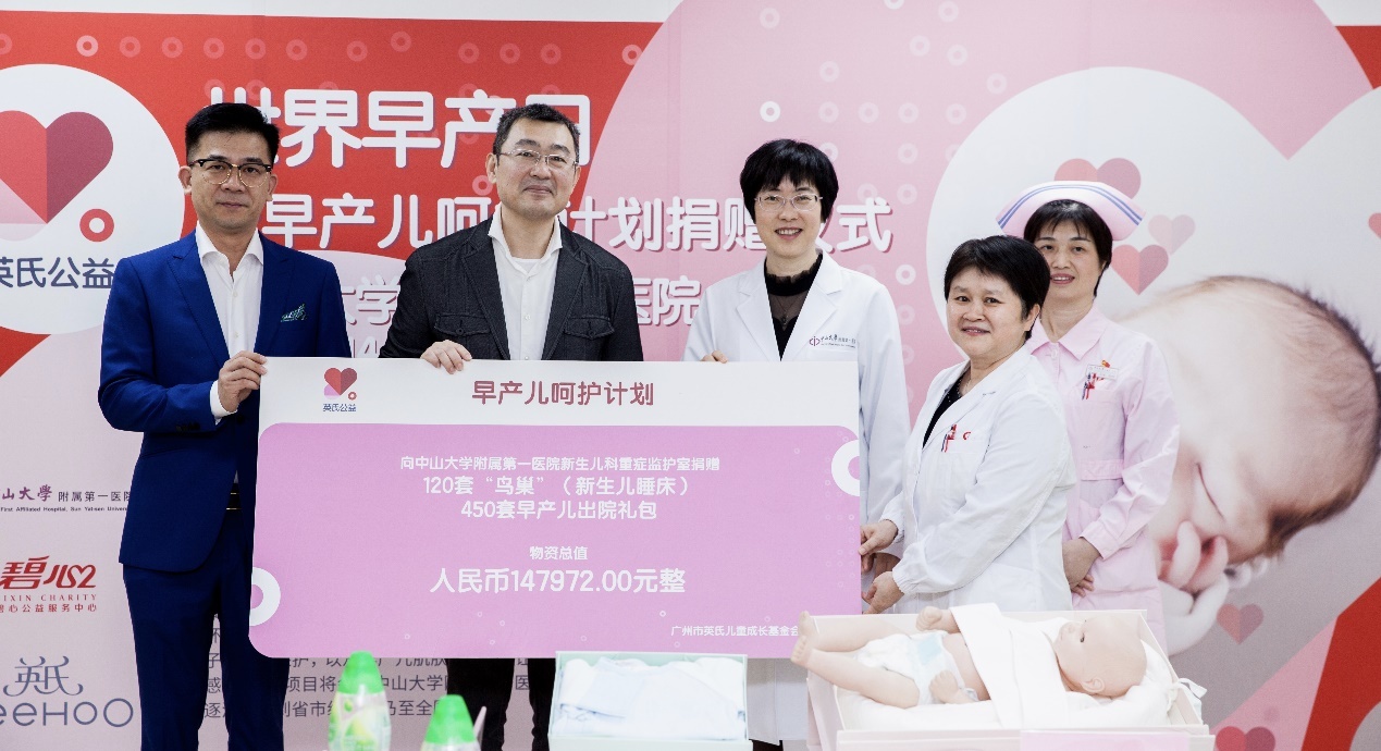 在11月17日世界早产日到来之际,由中国母婴行业翘楚品牌YeeHoO英氏注资成立的英氏儿童成长基金会携手中山大学附属第一医院以及碧心公益服务中心共同开启“早产儿呵护计划捐赠仪式” 第三站,向专业医疗机构捐出早产儿“鸟巢”新生儿睡床120套,以实际行动为早产儿提供更舒适安稳的睡眠,助力他们健康成长。