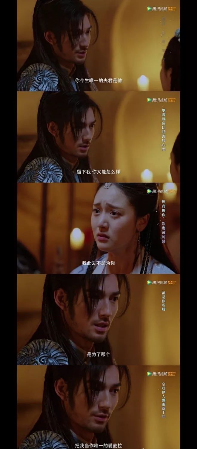 为了挽回爱麦拉的心,云伺与李谦争风吃醋,还为了保护她身受重伤。就在公主为救王爷深入敌营时,云伺悲痛的咆哮道:“你的天地万物,转瞬便换做了李谦,我何错之有?凭什么要我认了这个命数”!抖动的面部肌肉彰显着他的愤怒,复杂的眼神中包含着他对爱麦拉的爱、恨、恼怒与无可奈何。但是在变了心的女人面前,这样一个简单、执着的硬汉将军如何强求都难有结果。