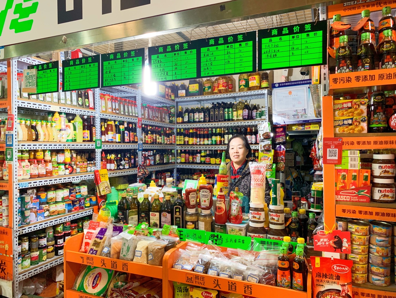 董阿姨在这里卖调味品已经有27年了,天黑以后老伴会来跟她换班,今天她精心为调位品换上了亮眼的商品价签。