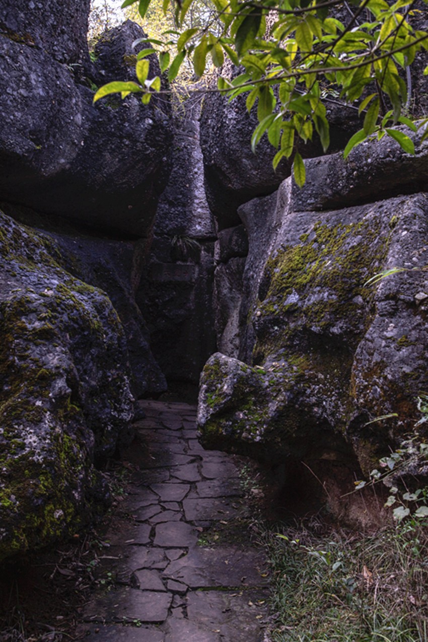 穿行在石林间也是不那么容易的,有的石柱之间狭窄只容一人通过,道路更是绕来绕去毫无规律。