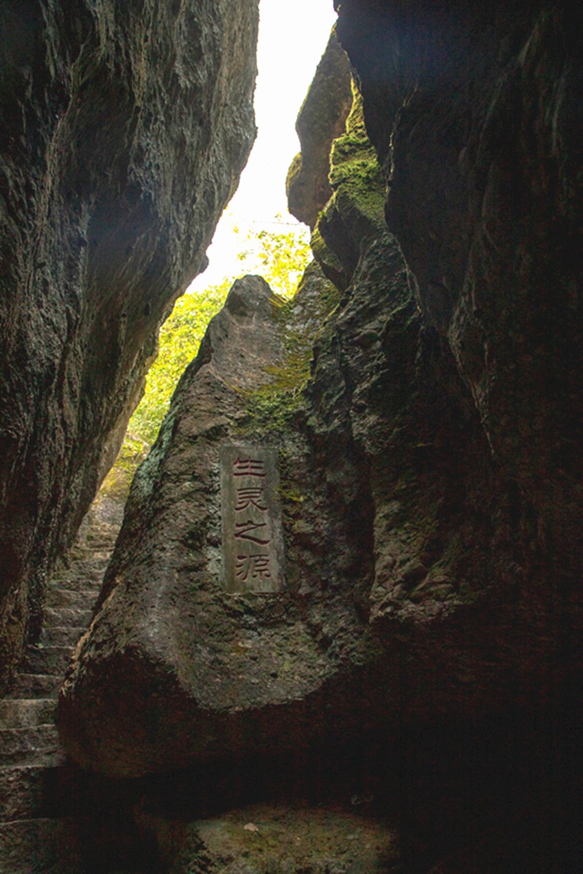 绝处逢生,是由两块山体相间,形成中间的一线天的景色。