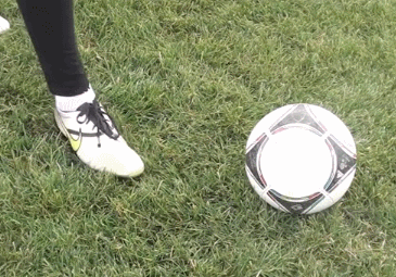 刚开始,可能不习惯发力方式。需要多加练习。如果脚部力量不足或为弱势脚,可以选择将脚面向内侧微微翻转,并绷紧脚面。以获得更大的触球面积。