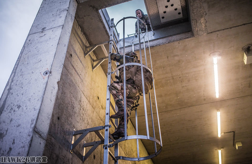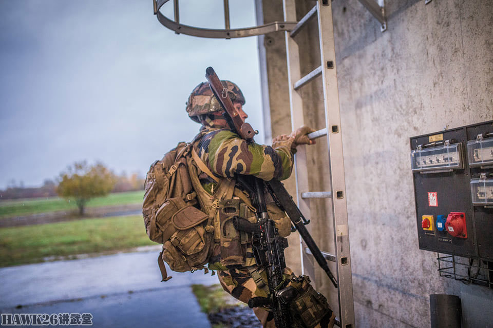 狙击手随后也爬上梯子,对于他来说,1.2米长的FR-F2狙击步枪绝对是一个麻烦。FR-F2狙击步枪安装瞄准镜后,重达5.8千克,再加上他带着的HK416F-C短步枪、手枪,负担绝对不轻。不过,考虑到他移动的距离相对较短,为了保证自卫能力,这样的重量他必须自己克服。有时候,坐在办公室的军官无法理解前线士兵在战斗中的真正需要,为了多活两天,什么重不重的,都不是事儿。