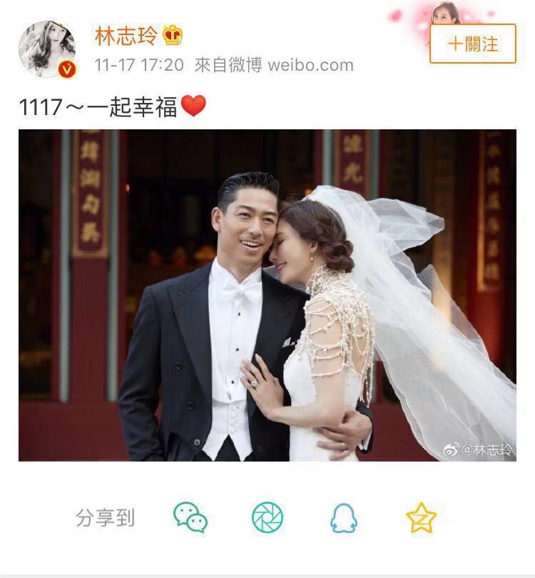 就在这几天,有关林志玲结婚的信息就开始流出,如林志玲彩排婚礼、林志玲婚礼行头、婚车等,其中不少上热搜。昨天晚上17:20分发微博合照,选的这个时间真的很有仪式感了!