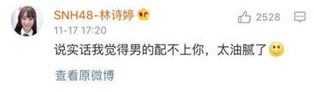 就连明星也站队,在娱乐圈里面,明星结婚大多都是得到同行的祝福,很少会有同行嘲讽的。如SNH48—林诗婷明确表态不看好男方,觉得配不上林志玲,太过油腻。可见有不少人不看好这一对。