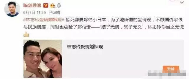 还有在几个月前,娱乐圈内陈剑导演导演就曾经发微博表示反对,呼吁封杀林志玲。