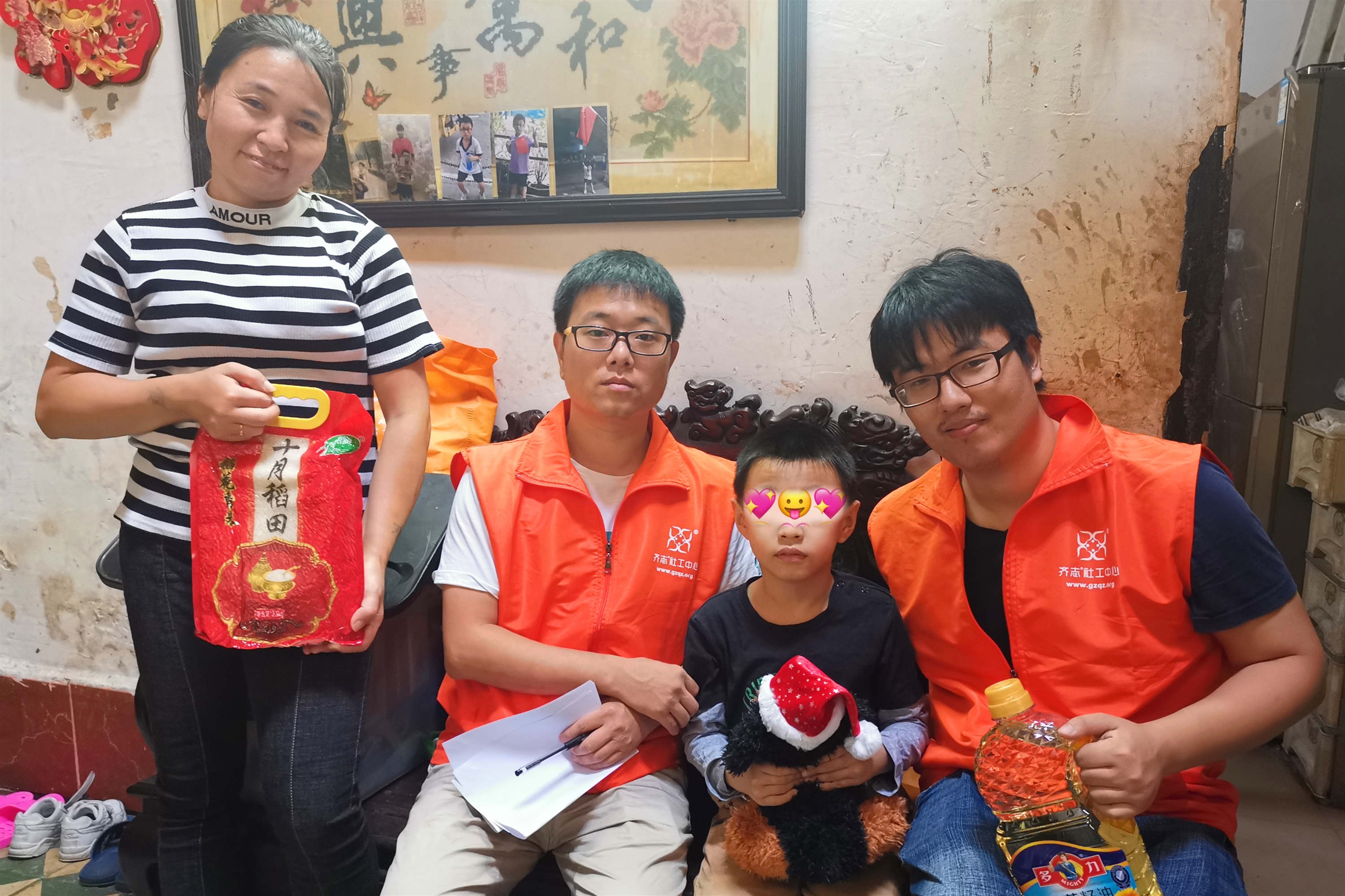志愿者们带着油米和公仔等慰问品来到小佑的家,发现家徒四壁,墙壁到处是渗水的痕迹,据小佑妈妈说,全家有7口人,都是靠她一个人打2份工来维持,家公和老公都患有重症常年卧病在床,由于是外来媳妇,所以处境非常不好。虽然生活很艰难。但看到最小的孩子还这么小,只能咬牙坚持下去。每天打工到半夜2点才回家。根本就没时间来辅导小孩子的功课。小孩子的英语基础不好,因为自己的文化层次不高,也不懂怎么辅导孩子的学习。所以非常需要志愿者的长期辅导。