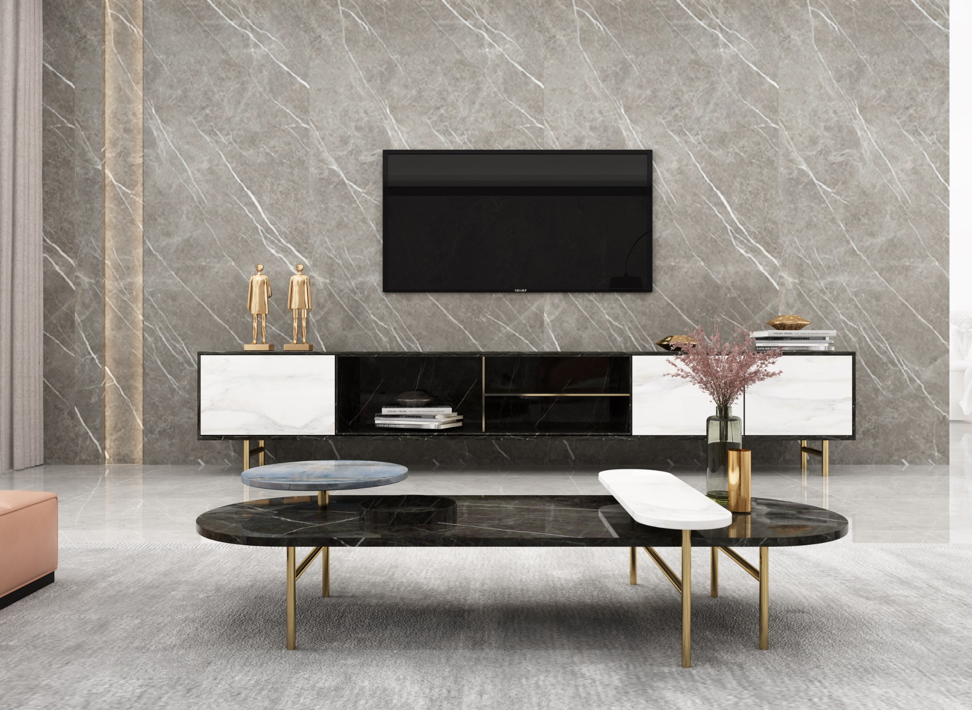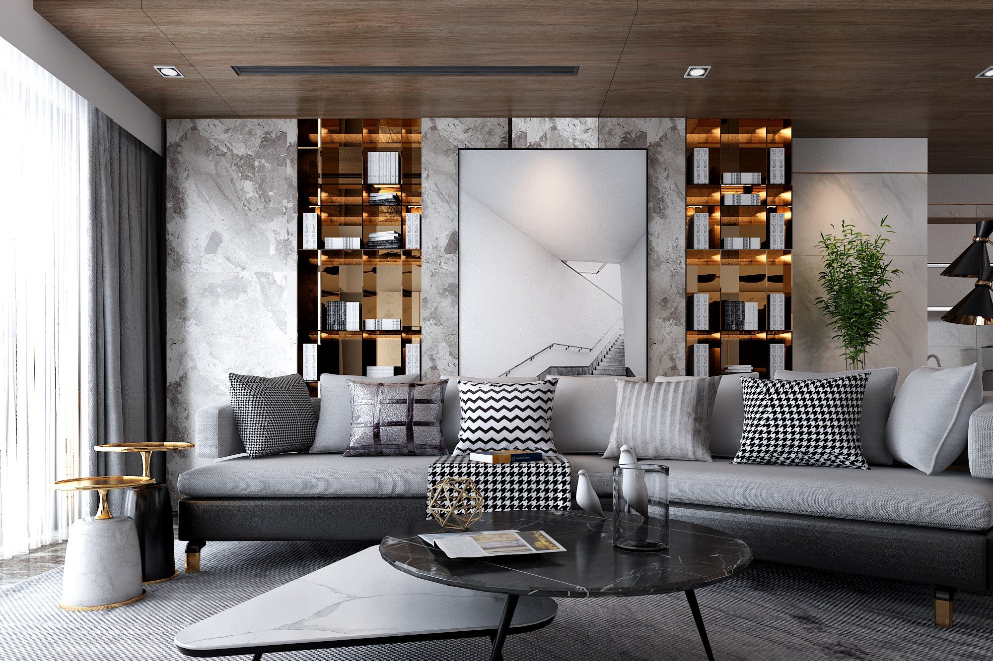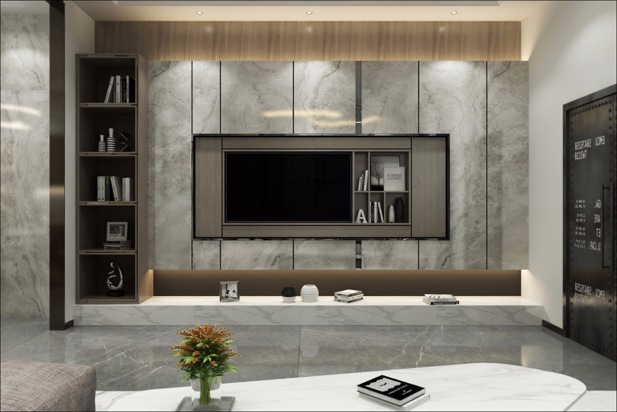 ▲高级灰岩板背景墙效果图