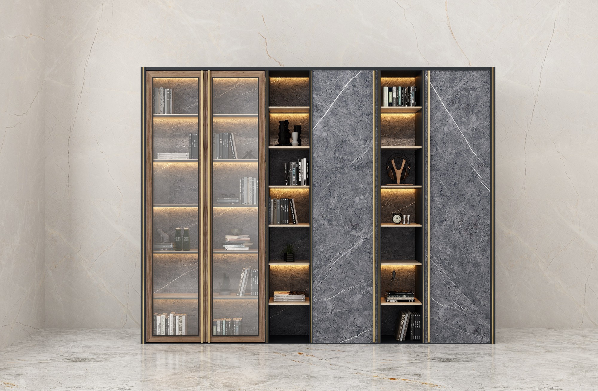 ▲岩板书柜高级灰效果图