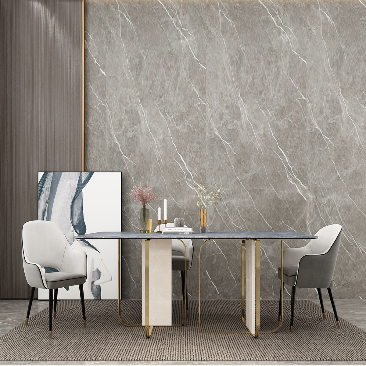 这样的高级灰+轻奢的岩板家居,难道不值得你爱吗?