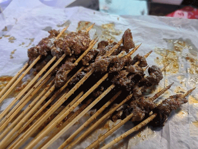 各种牛肉羊肉小串,15元20串,拍出一张毛爷爷,给我来100串还能找钱,吃烧烤要的就是豪气。