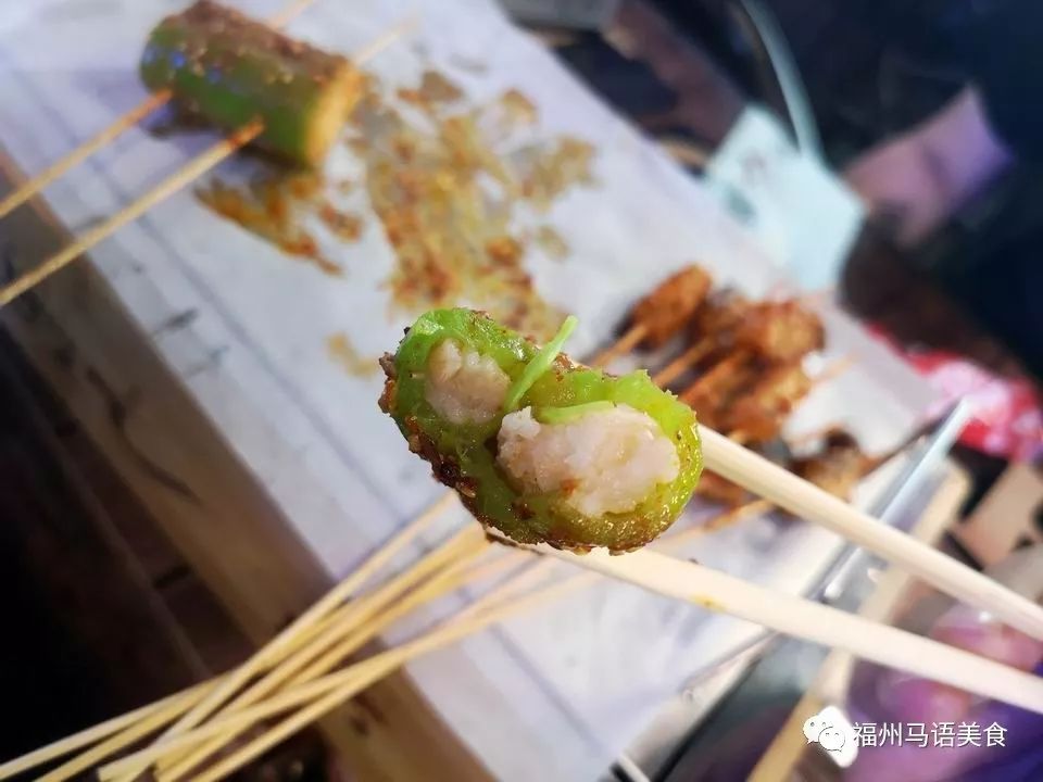 新颖总是吸引人的,有创意才有卖点,七爷虾滑是鳗七爷自创,灵感来自“酿”,客家菜常见手法,把虾滑酿到青椒肚烤制而成。
