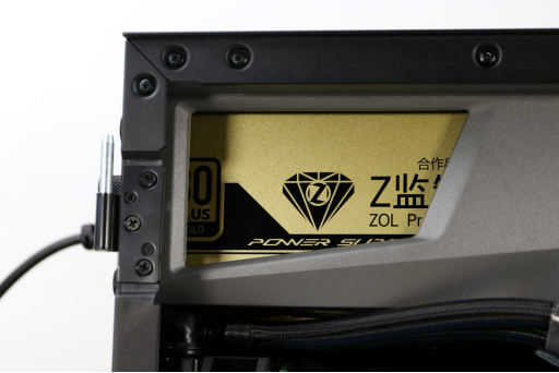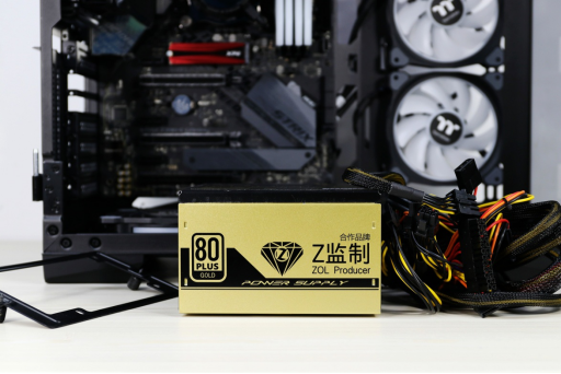 电源侧面印着80Plus金牌的标志和Z监制的LOGO。那么现在来稍微科普下这款电源所提到的:双认证。Z监制LOGO。这是中关村在线2015年初推出的品牌合作项目,并联合多家厂商推出的“Z监制”电源产品,并且在推出后获得了不少玩家的好评和认可。