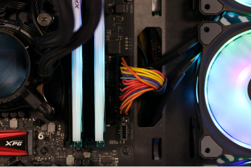 多接口串联的SATA和大4PIN供电一共有两组,可以同时提供多硬盘安装和多灯控供电供电接驳,因为现在的电竞主机都提倡灯效氛围,所以很多时候我们就需要会用到SATA或者大4PIN接口来给灯扇的或者水冷提供额外的供电。