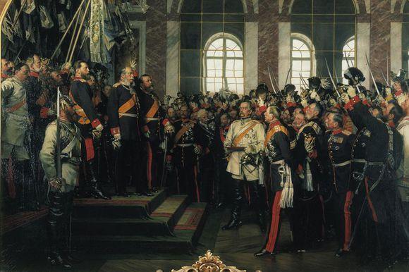 他暗示给予法国领土使法国保持中立,但在战后断然拒绝拿破仑三世要求的南德意志联邦的领土,并通过战争威胁,将南德意志联邦纳入普鲁士的怀抱。法国皇帝这时候也明白他是被俾斯麦耍了,不肯受辱,普法战争顺应形势自然而然的发生。普军打入凡尔赛,德皇威廉一世在法国皇宫加冕,抢回了和平女神,一洗了百年屈辱。