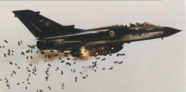 图为飞机使用多功能布撒器投放弹药