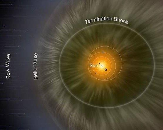 由于外部边界是由太阳风和太阳引力这两个不同的力形成的,因此无法精确定义太阳系的末端和星际空间的起点。太阳风影响的极限约为冥王星与太阳之间距离的四倍,太阳的顶部是太阳系的外边界,被认为是星际物质的开始。