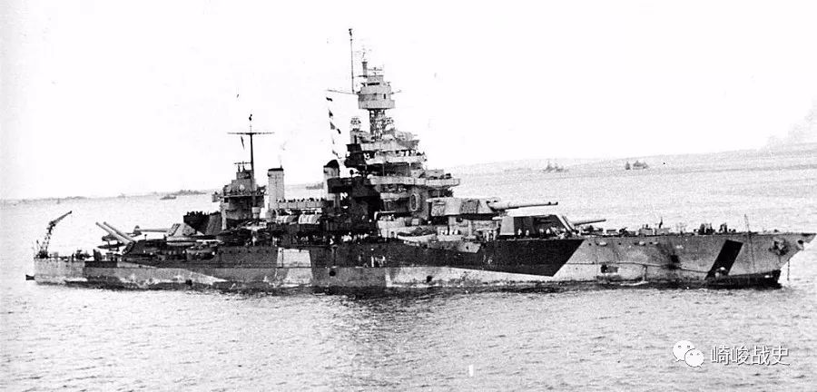 ■ 在提尼安岛遭岸炮攻击受创的“科罗拉多”号战列舰。