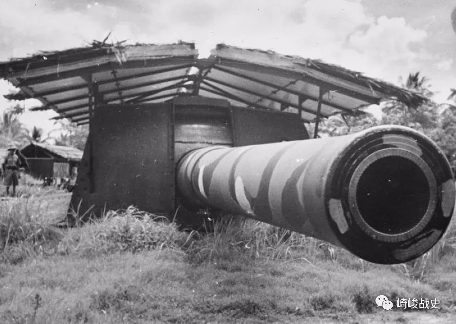 ■ 部署在新加坡海岸炮台上的英军381毫米重型岸炮。