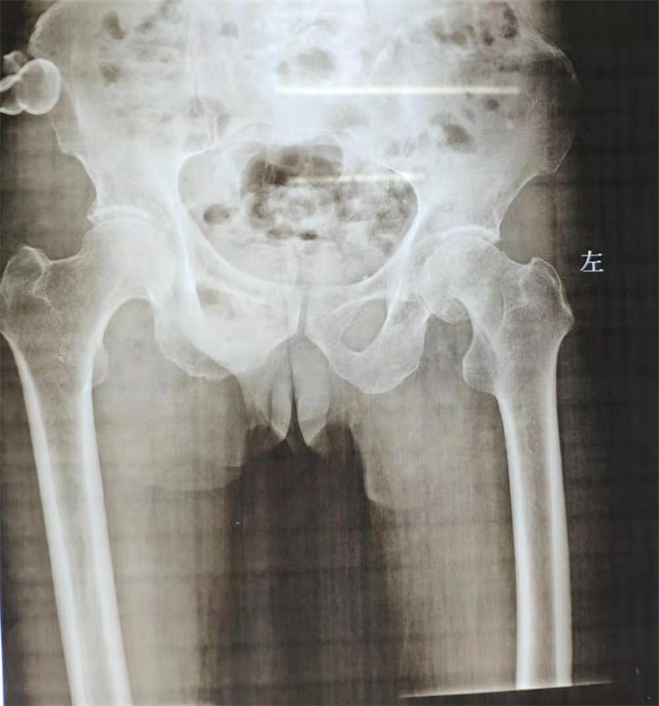 11月初,一位特殊的患者慕名找到张勤安主任医疗团队,希望张主任团队能帮助他恢复健康,经查,该患者男,77岁,摔伤致左髋部疼痛7天;既往有急性脑梗病史,现遗留左侧肢体活动障碍,查体发现左上肢肌力1-2级,左下肢肌力2-3级,臀中肌肌力2-3级,X片显示左侧股骨颈头下型骨折。