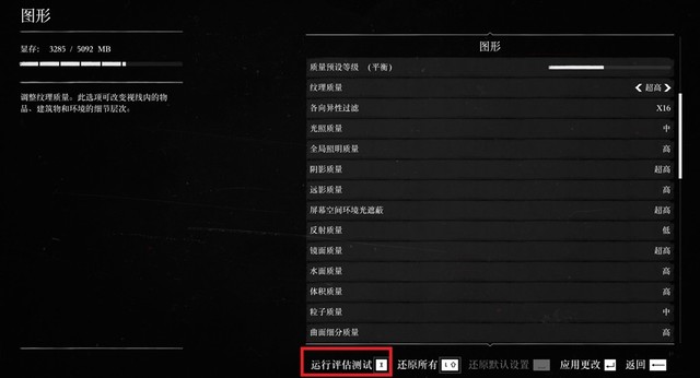 为保障结果的真实有效性,测试采用了《荒野大镖客2》中游戏自带的“运行评估测试”工具。