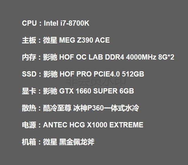 测试平台配置如图,本次使用的影驰GTX1660 SUPER 显卡,适用于1080P画质的游戏体验,所以游戏测试仅测1080P画质。