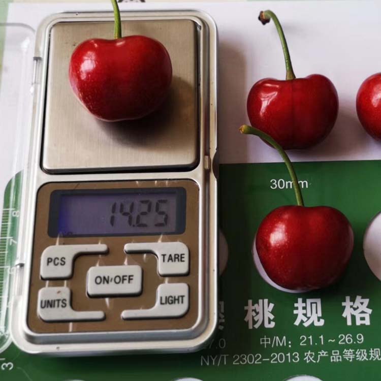 瑞德是从美国汉福德引进的中熟新品种,R型樱桃优系,成熟期比布鲁克斯晚两天,属于特大果,单果14-15克,果实硬度好,果形平顶宽心脏形,果皮深红,果肉深红,甜度高,脆甜多汁的口感,畸形果率极低,更重要的是丰产稳产(美早有大小年,大小果现象严重,裂果),瑞德抗裂性好,高纬度地区表现也很好,潜力很大。