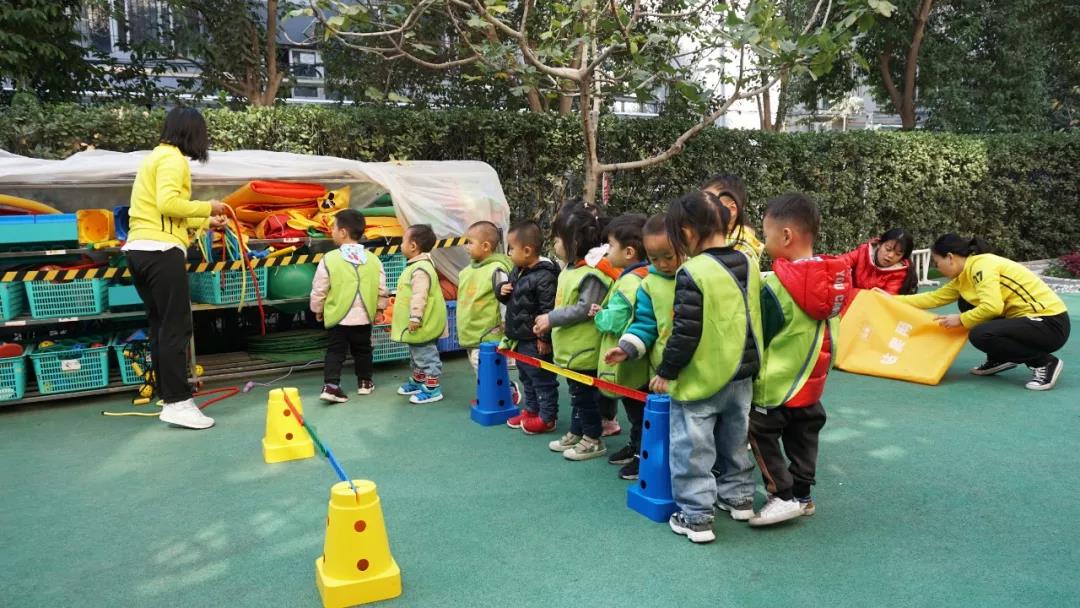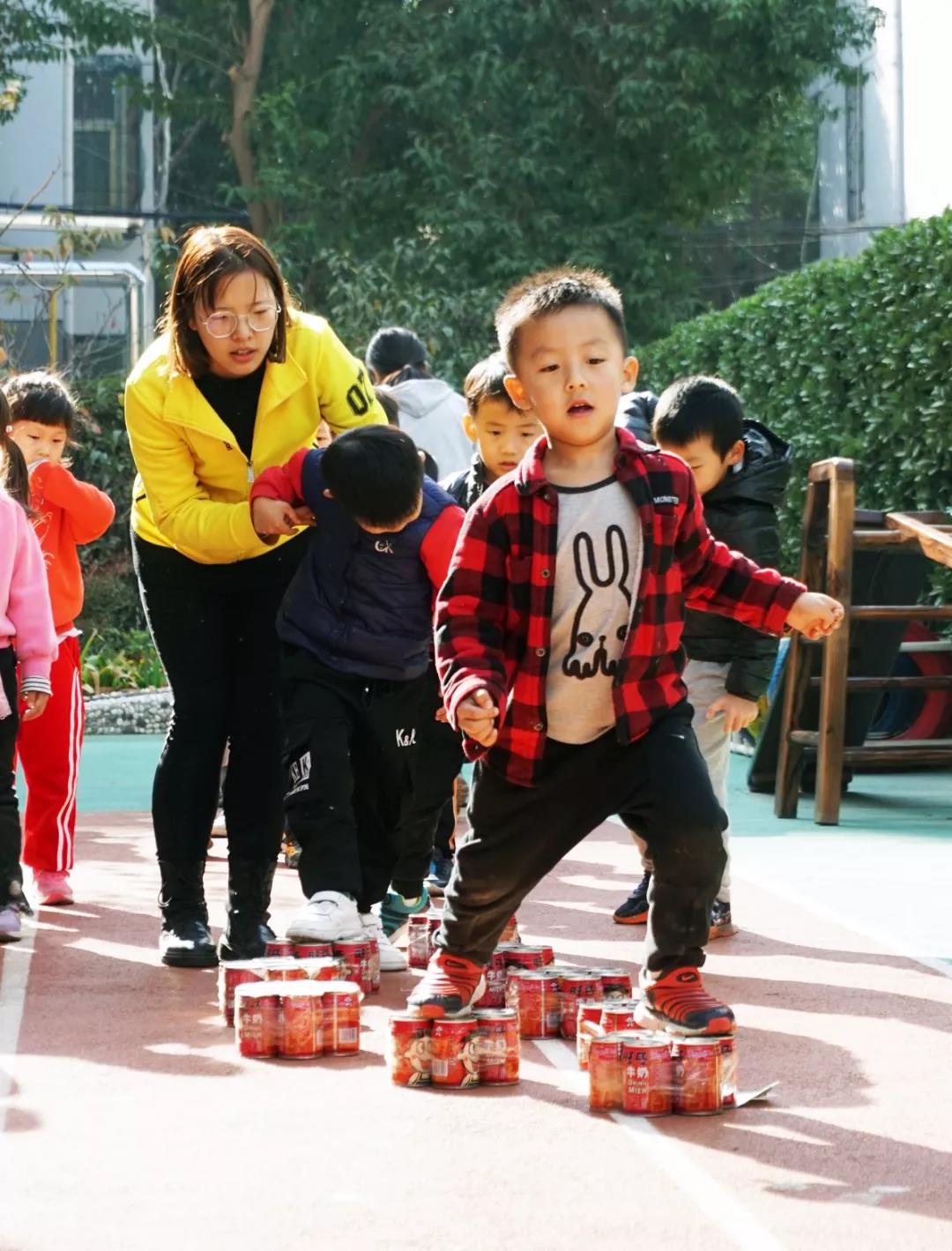 正说话间,有个孩子脚下没踩稳,老师一个箭步上去搀扶住,孩子站定之后又笑着跑开了。