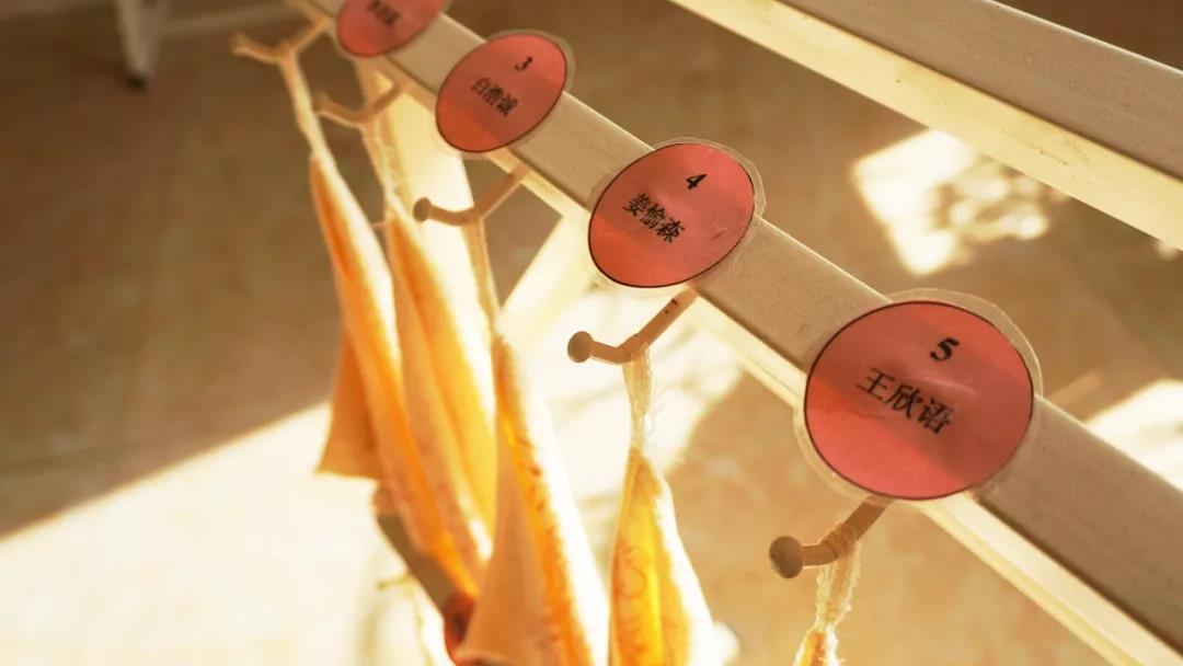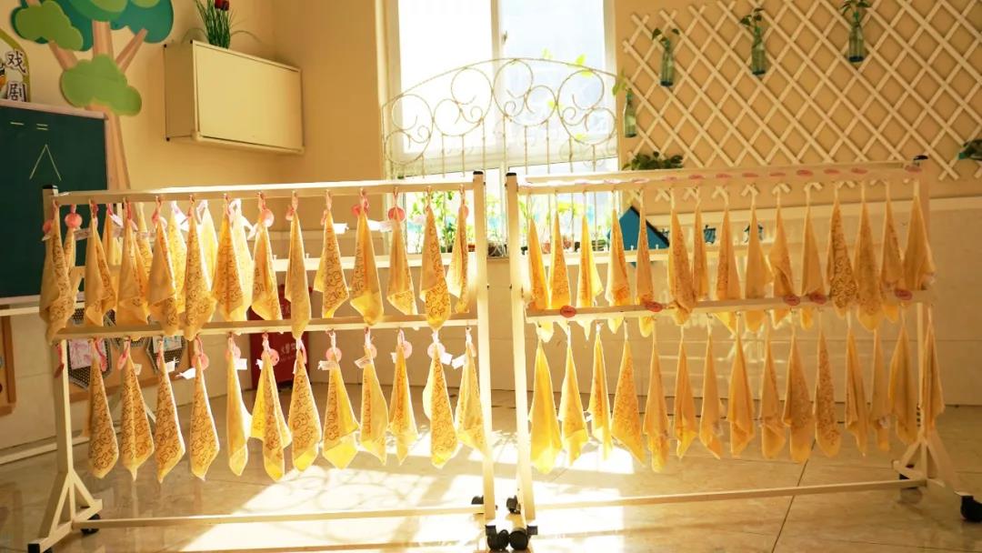 我们参观的时候发现了一个细节,在三楼的窗户边上晾晒的有孩子的手巾,问过之后才知道,这是园里老师每天的必修课:给孩子洗毛巾,然后再晒干。
