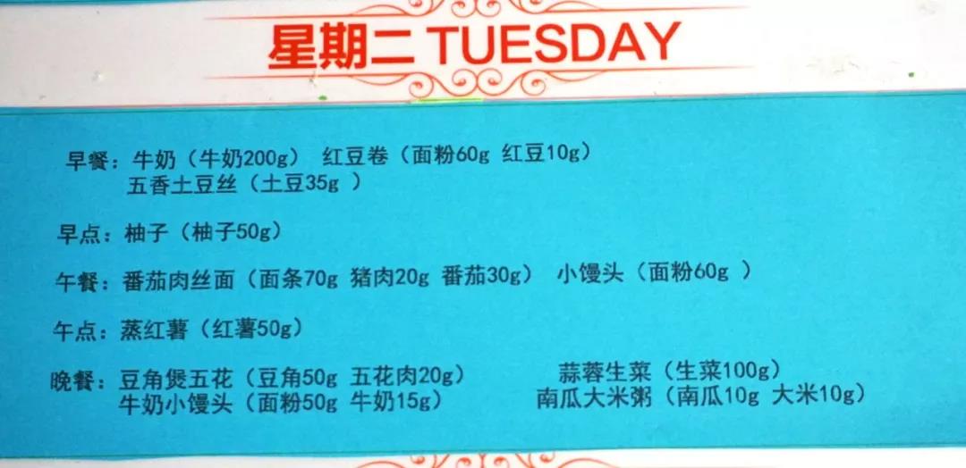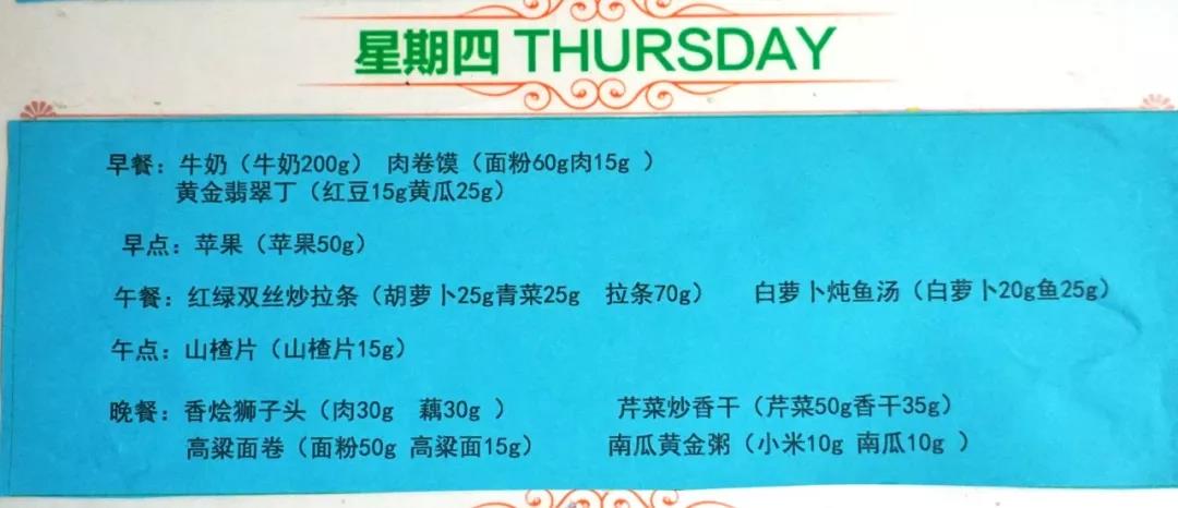 带我们参观的老师说家长选择他们的原因中有很重要的一个就是餐饮还可以。一进大门的时候门口就放了一个牌子写明了本周每天的餐饮内容。