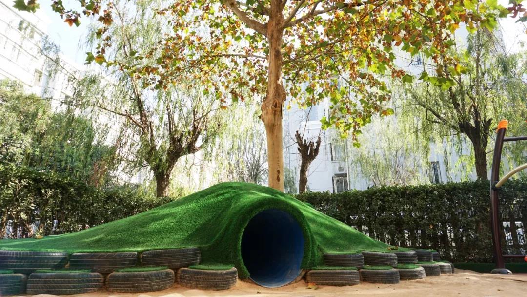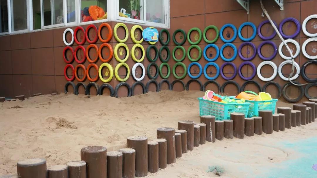 利用边角做一个沙滩,孩子们在幼儿园就能玩沙子,堆城堡。