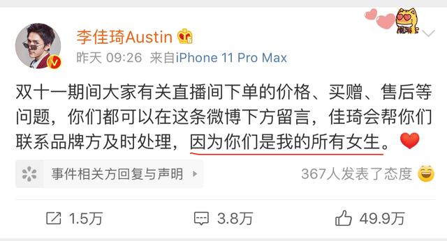 不过李佳琦的人缘非常好,可以看出粉丝还是非常维护李佳琦的,毕竟谁也顶不住“你们是我的所有女生”,妇女之友啊。
