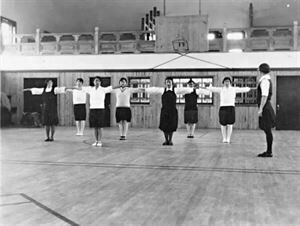1930,燕京大学女子学院的学生在博伊德健身房(女子体育馆)上体育课