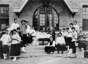 1928,燕京大学教育俱乐部成员在南北阁西侧合影