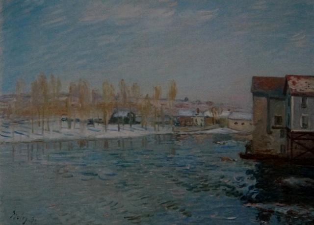 莫雷雪景:卢万河畔的磨坊 艾尔弗雷德-西斯莱