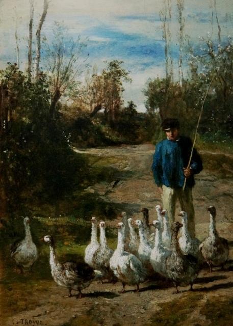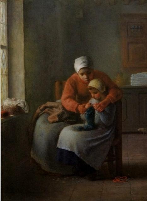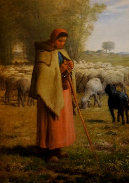 米勒是巴比松画派的核心人物。单独的牧羊女是他最钟爱的主题之一,编织也是米勒作品中的常见主题。