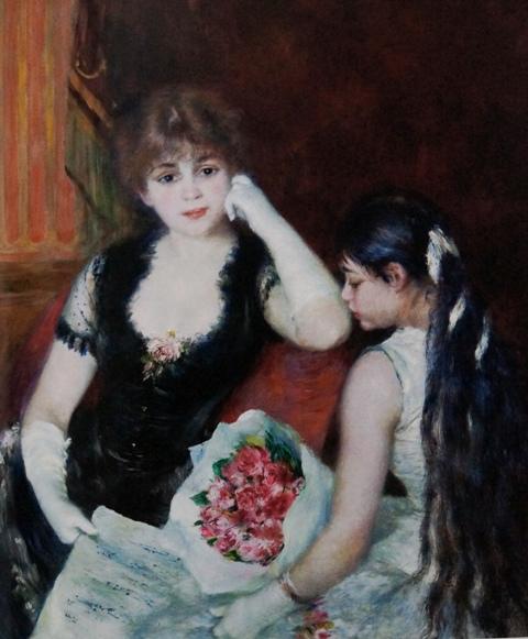 在雷诺阿众多表现剧院包厢高贵人物的作品中,这幅油画是最后、也称得上是难度最高的一件。克拉克十分喜爱这件作品,购藏此画时写道:“女子可爱,着色、施彩、构图俱佳”。