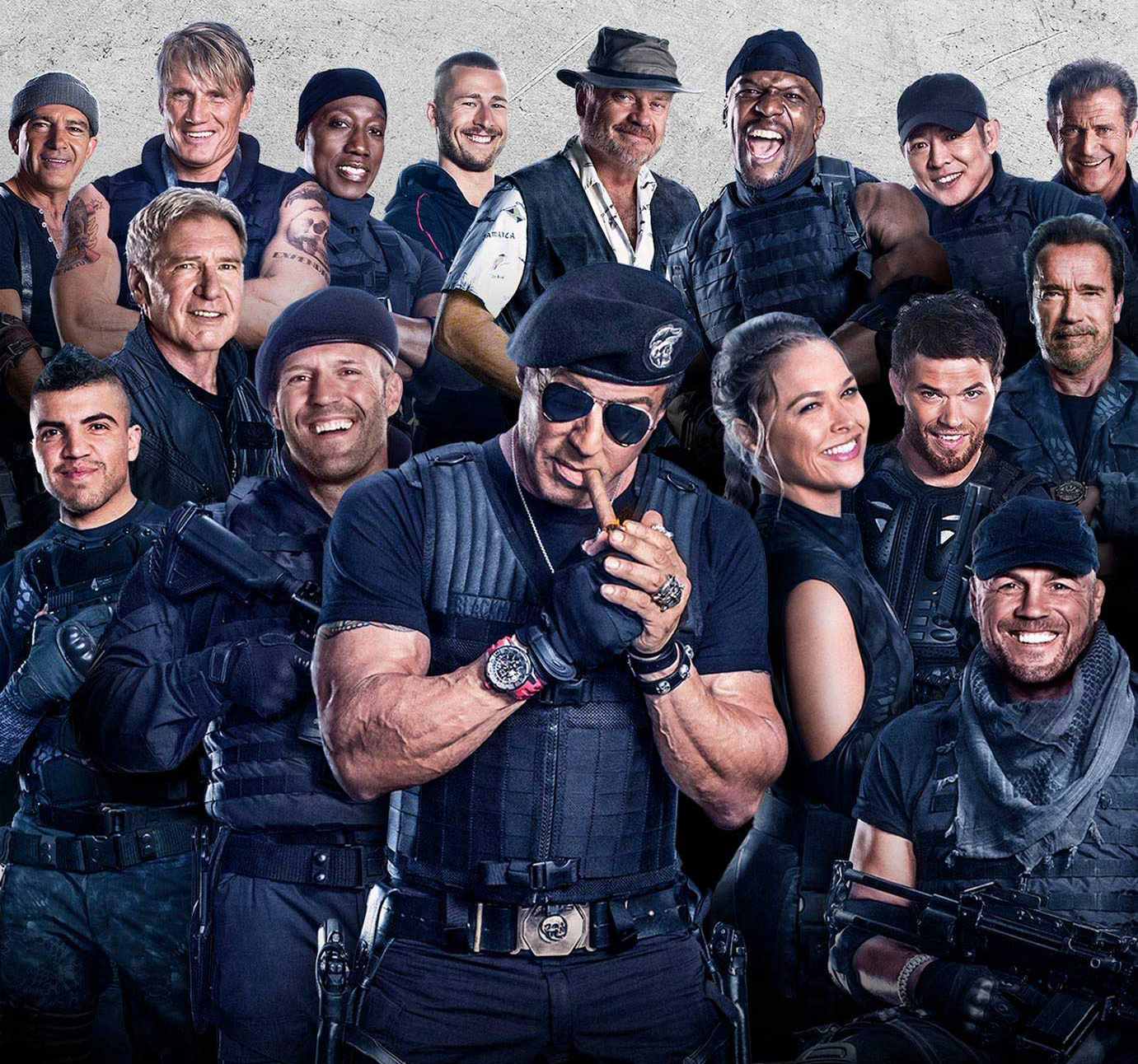 《敢死队》1、2、3被誉为肌肉猛片,绝对是男性最爱,《敢死队》系列是向1980年代至1990年代的动作电影致敬,三部电影的卖点在于全套动作片演员的班底,汇聚了大批动作片巨星,包括史泰龙、施瓦辛格、杰森·斯坦森、李连杰、布鲁斯·威利斯、梅尔吉布森、哈里森福特等。