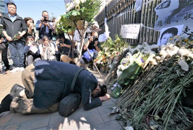 罗老伯家属在事发现场路祭。(图片来源:港媒)