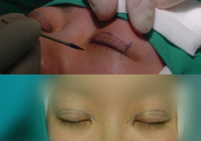 手术方法:把脱落的泪腺复位到泪腺窝,同时去除多余的眶隔脂肪,变成自然好看的双眼皮。