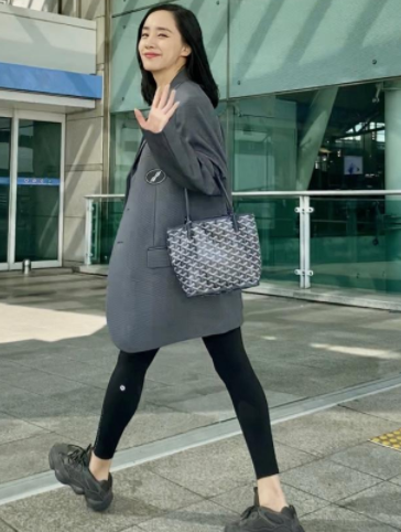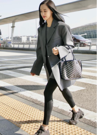 比如王智穿的一件长款的灰西装外套,加上黑色打底袜,就展现出了她十足的好身材。本身看起来十分随意的穿搭,加上一双黑色运动鞋,却能看出她的纤瘦曲线美。而从远处看的话,根本不觉得这是袜子,反而会觉得是瑜伽裤,把王智的整体身材都拉伸了,看着很大气也比较上档次。