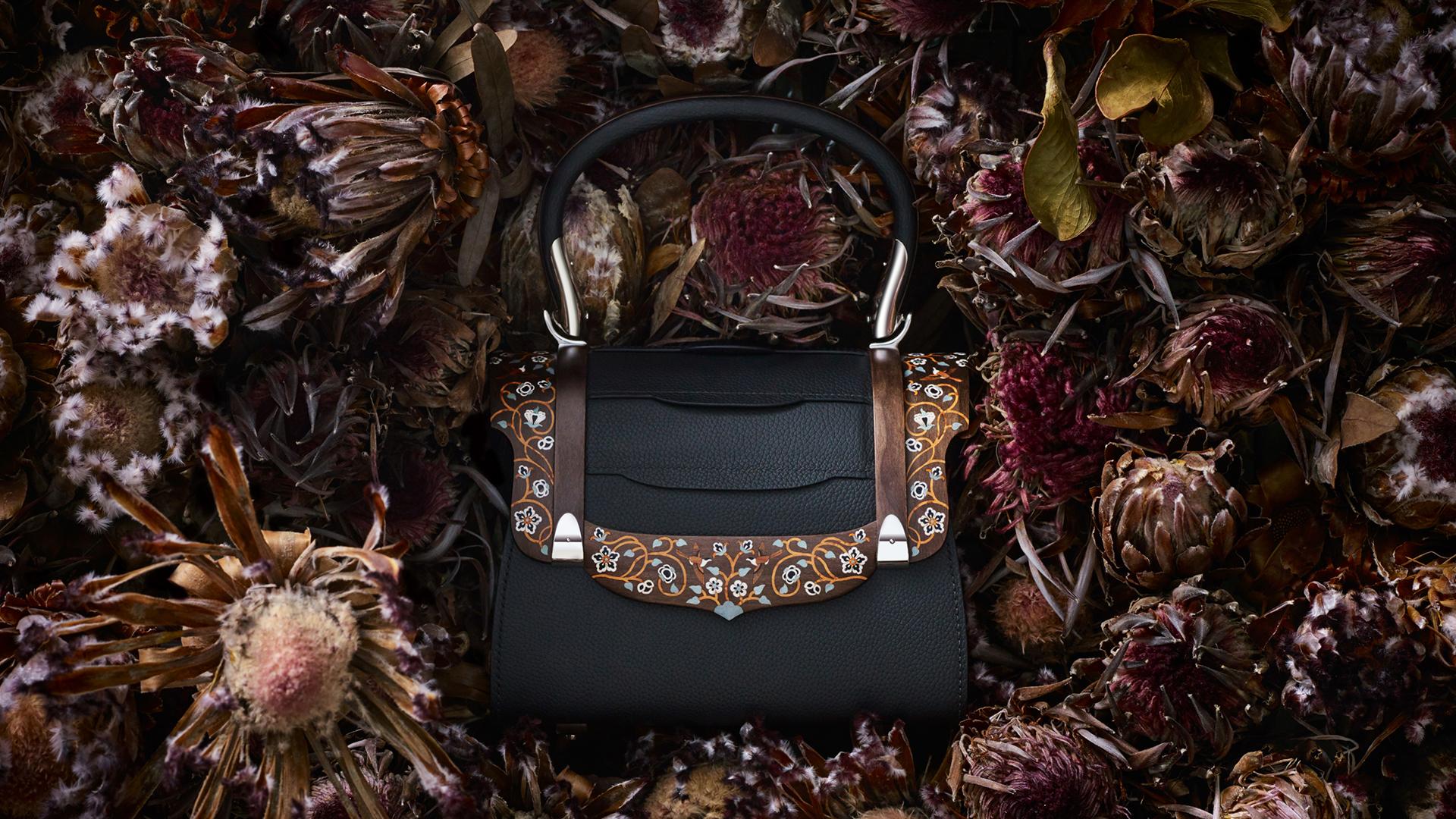 木是品牌的核心元素,全线产品以木为主体, 辅以锦缎、 皮革。品牌团队经独立研发,复原了古老的唐式木嵌技术。产品上的图案纹饰均由匠人手工镶嵌而成,这是一种盛行于唐代的古老工艺,以各色碎木拼成花卉鸟兽,并镶嵌到预先在器物上挖好的槽中,仅是木镶嵌环节,一只镶嵌花钿纹木作手拿包就需要22个流程、194道工序,其精度要求在十分之一毫米,所以在镶嵌完成后,不论图案何等繁复,手触始终平滑如镜。