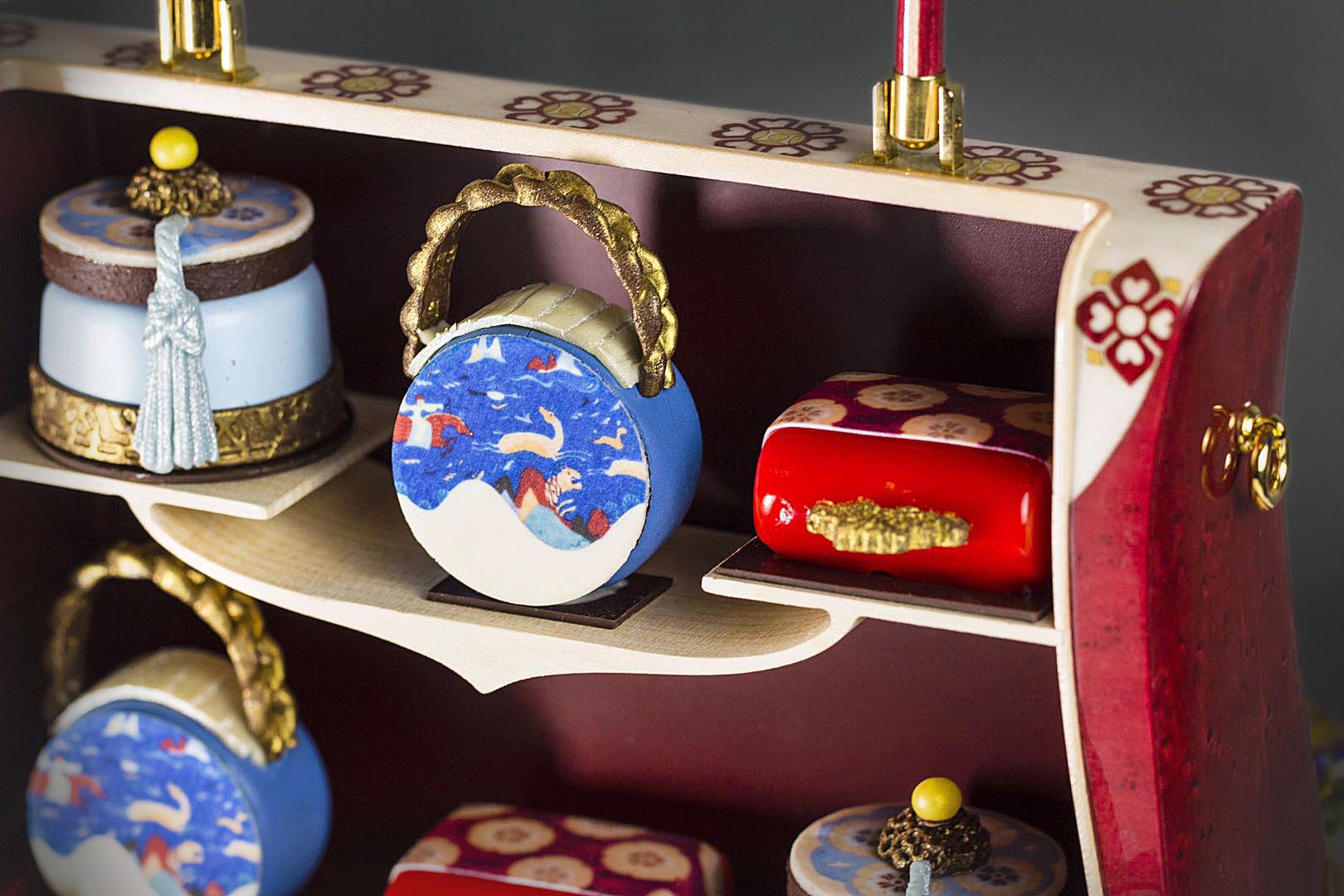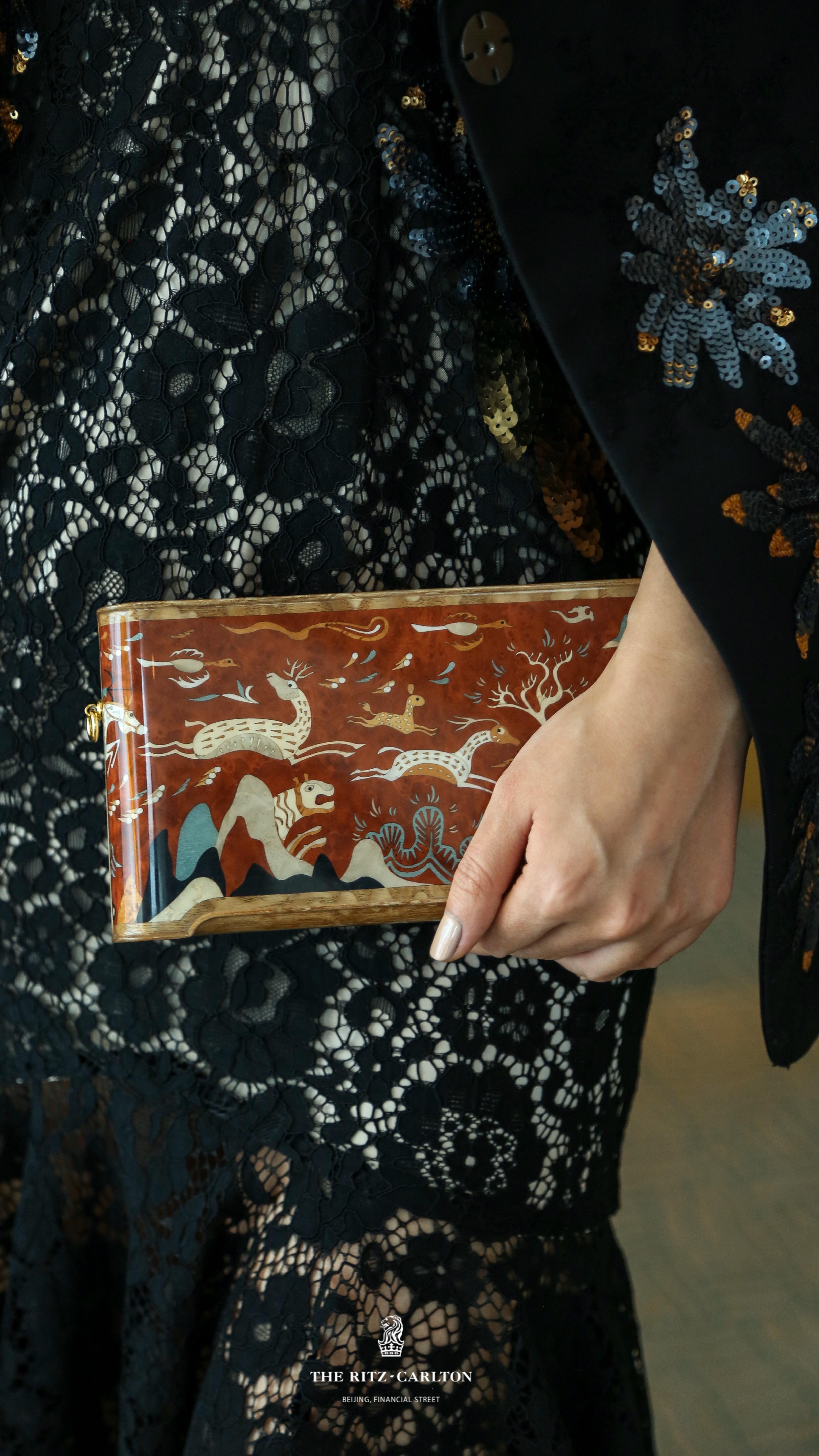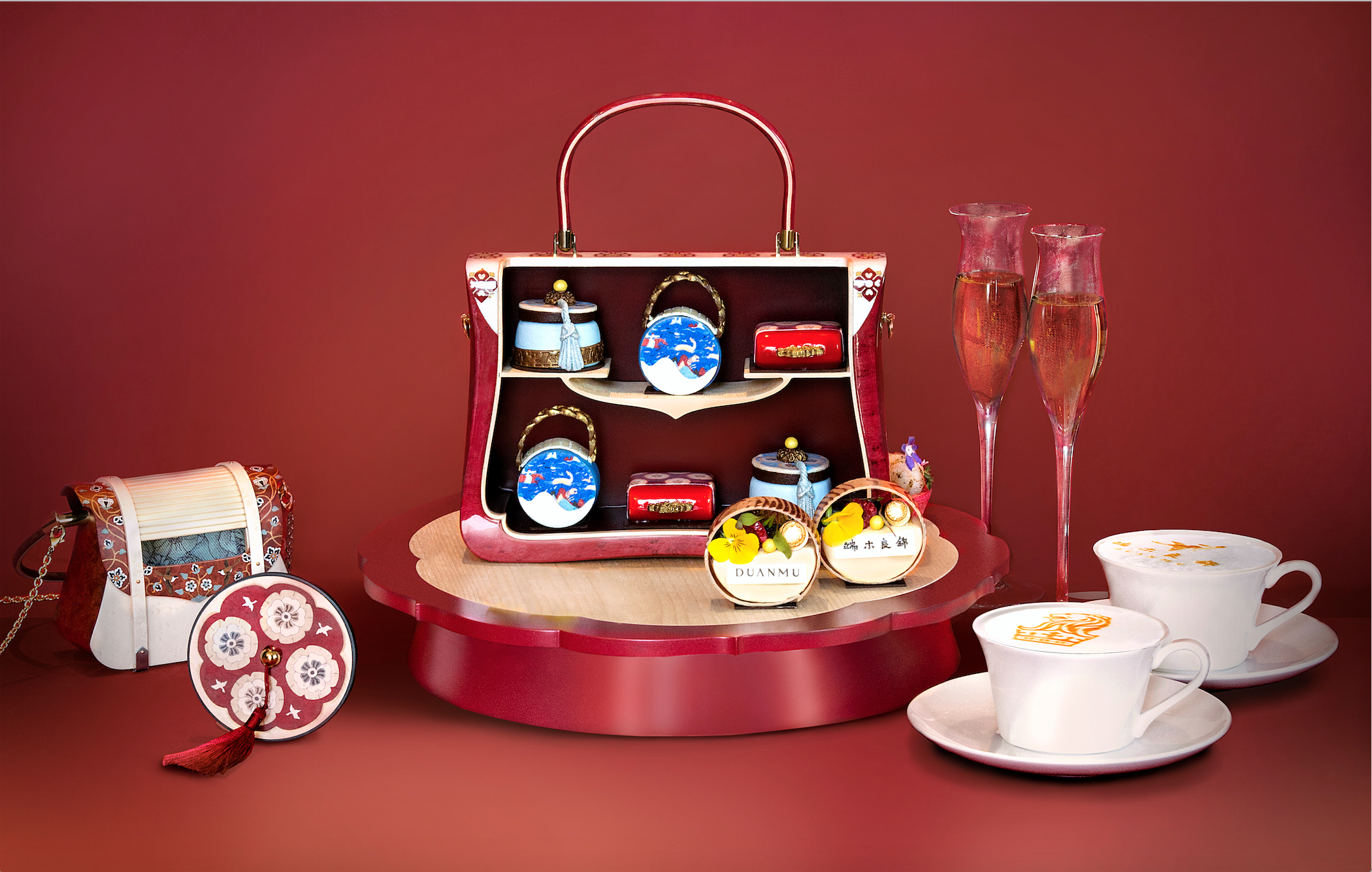 此次端木良锦联袂北京金融街丽思卡尔顿酒店,合力将盛唐元素注入产品文化基底,以联名下午茶跨界合作方式,共同弘扬国风美学。酒店独具匠心的甜品师团队,以端木良锦的木镶嵌工艺及盛唐文化为设计灵感,创作出造型精美、别具特色的下午茶点,与端木良锦为此次联名下午茶独家打造的手包款点心架互为点睛,为宾客们奉上味觉与视觉的双重臻享。四款精心定制的古风甜点宛如指尖珍宝,被陈列于端木良锦标志性手包之中,随莲花型枫木托盘优雅旋转,多角度绽放美感,典雅高贵又不失时尚与灵动,释放出璀璨汉唐文明的文化张力。