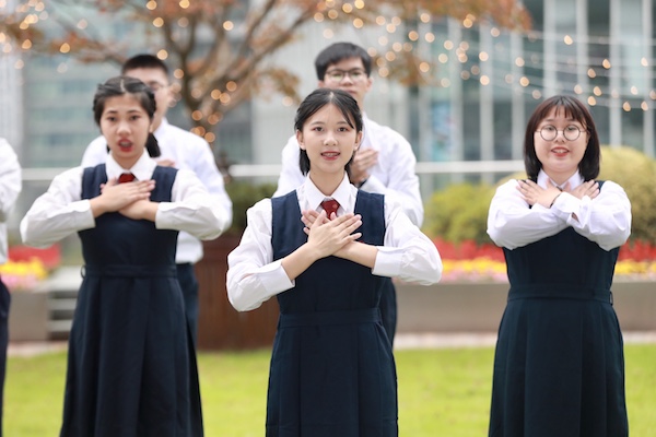 在现场,濠江中学学生给人的感觉是开朗阳光又谦逊有礼,与大陆学生毫无隔阂感,内心对国家非常认同。 据中福会相关负责人介绍,在当天合唱前,两个学校的孩子并没有见过面,三首歌曲和手语要求都是通过网络传过去。濠江的孩子到上海后直接参加视频拍摄,可见之前有非常认真地排练。