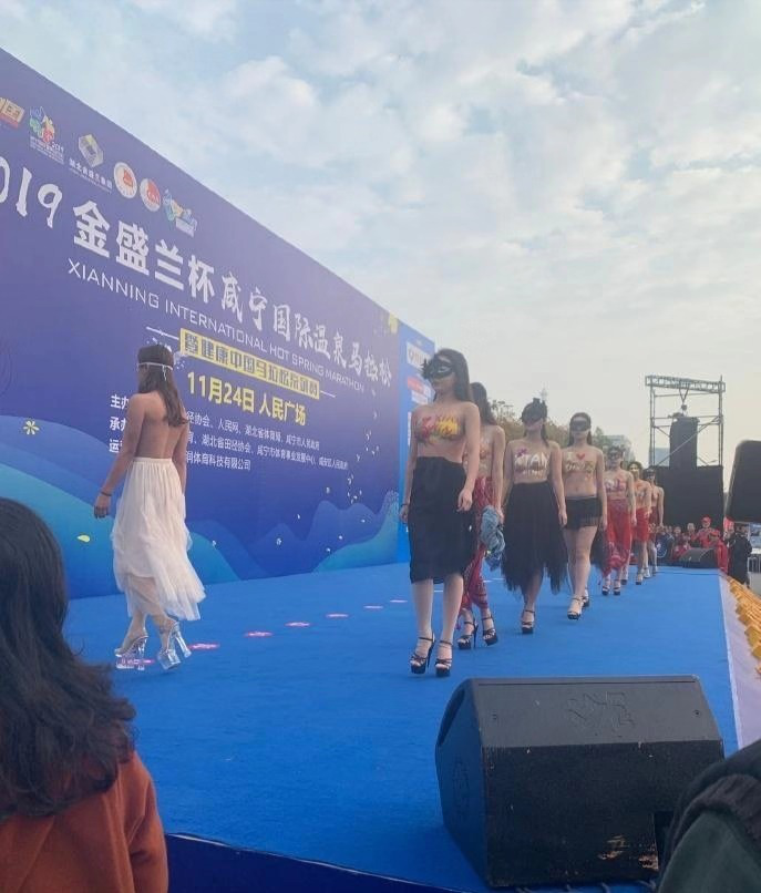 根据现场发布的图片来看,主办方邀请到了一组女性彩绘模特,她们几乎都光着上半身,身上涂抹着彩绘的花纹,下半身则统一穿着裙子。这组表演一出来,不少人顿时觉得有些无法理解,毕竟这是一项马拉松赛事,跟人体彩绘无关,这项看起来总给人感觉有些低俗。