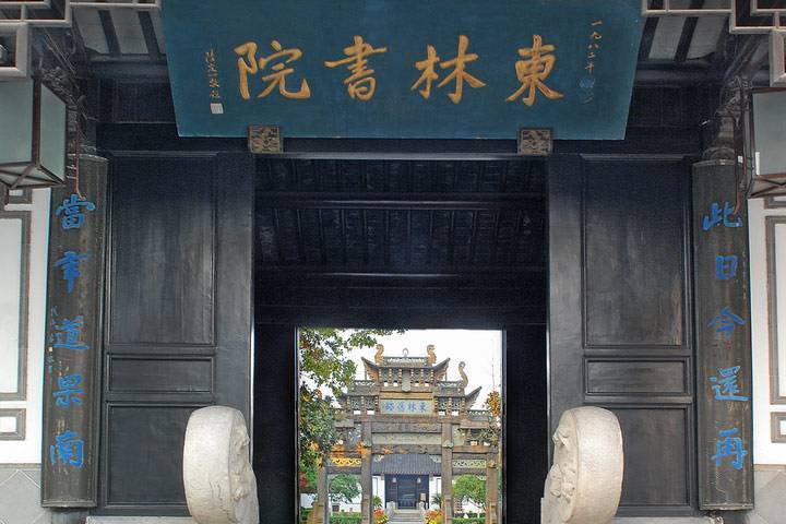 由东林学者顾宪成等人重兴修复并在此聚众讲学,他们倡导“读书、讲学、爱国”的精神,顾宪成撰写的名联“风声雨声读书声声声入耳,家事国事天下事事事关心”更是家喻户晓。